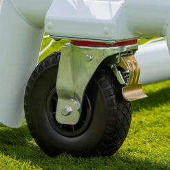 - The wheels are large 260mm diameter cellular swivel wheels for easy manoeuvrability on natural grass or artificial turf pitches.